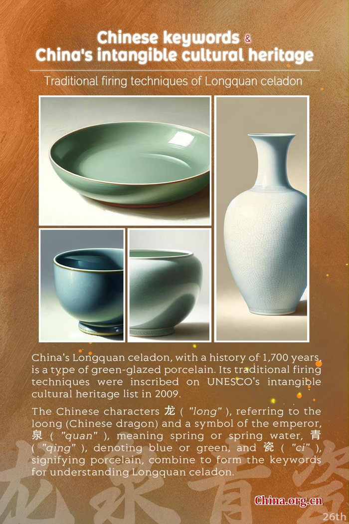 中国字与中国非遗 | 龙泉青瓷传统烧制技艺 Traditional firing techniques of Longquan celadon and its Chinese keywords