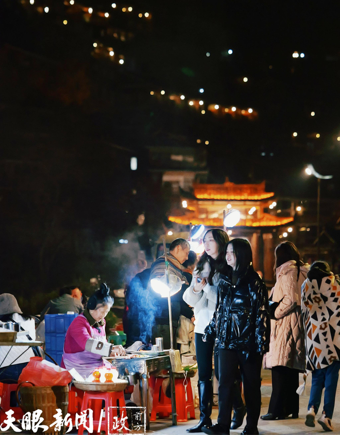游客杨莎莎说:“我们只租借了旅拍店的苗服,在嘎歌古巷里走走停停,感受蜡染、苗银等非遗魅力,又去云亭灯远眺,将整个苗寨万家灯火尽收眼底……”