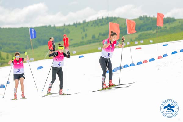 滑雪爱好者在呼伦贝尔扎兰屯金龙山滑雪场滑雪。