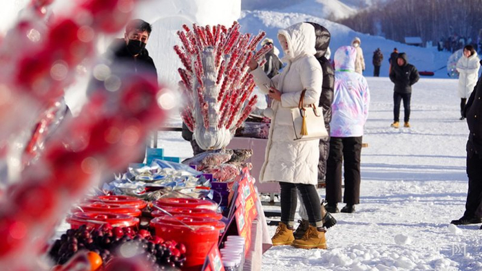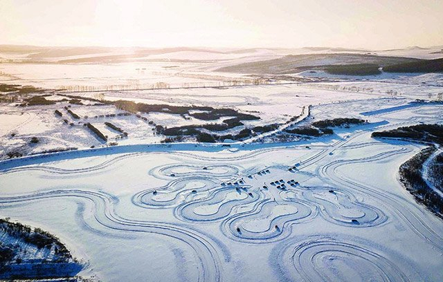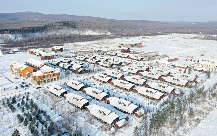 雪后陈巴尔虎旗金帐汗旅游部落成为游客打卡地。