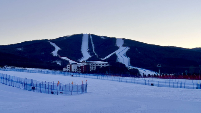 清晨赤峰喀喇沁美林谷滑雪场,静候滑雪爱好者入场。