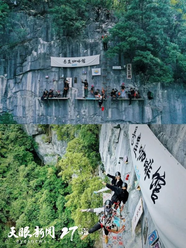 因玩法多样且新颖,深受年轻人喜爱。据荔波酷玩森林负责人任鹏介绍,“想要在这里喝上一杯咖啡可不容易。必须穿越原始丛林,攀上200米高的悬崖,在专业老师的指导下戴好安全装备,速降至悬崖中部,才能坐下来……”据悉,悬崖咖啡一经推出便成为网红项目,全网浏览量超1.2亿。