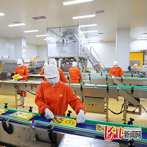 2022年10月9日,双合盛生态农产品有限公司工人在忙碌地分装黏饽饽。(河北日报资料片) 河北日报通讯员 孟宪凤摄