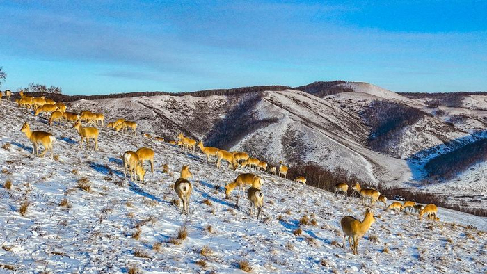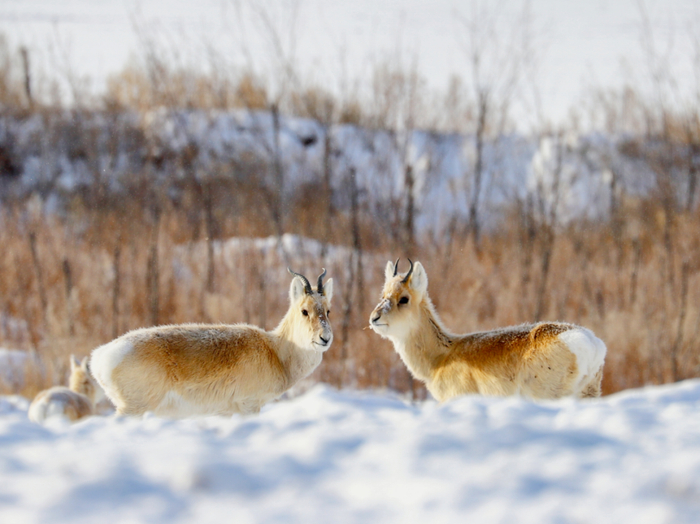 游客看到野生黄羊兴奋地呼喊。毕力格 摄