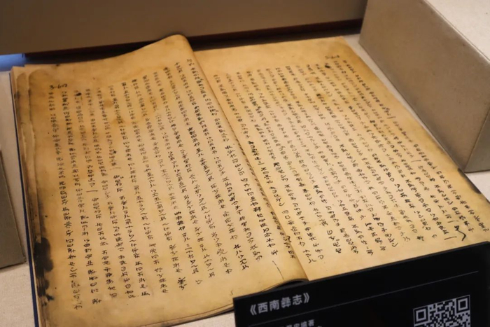 一部清代的彝文古籍《西南彝志》之孤本陈列展柜中。书中记载了这样一段历史:“洪武皇帝说,这君长是真正的忠臣,给予功名,赐给印章。”君长,指的是贵州彝人女首领奢香,她在位期间,开驿道、平靖边乱,为密切西南地区与中央政府的关系作出贡献,后被明太祖朱元璋追封为“大明顺德夫人”。这部古籍,见证古代西南少数民族对中央政府的认同与拥护。