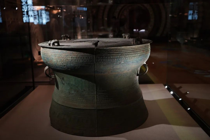 铜鼓是该展厅的重点展品。国家民委系统藏有铜鼓50余面,该展览就展出了30余面。铜鼓是古代南方民族创造的极富特色的礼器、重器和乐器,象征权力、财富,常用于祭祀、战争、娱乐等,学界则有“北鼎南鼓”之誉。不同地区的铜鼓原材料和铸造工艺均有交流,直至今日,南方许多民族仍在使用铜鼓,千年鼓声回响不绝。