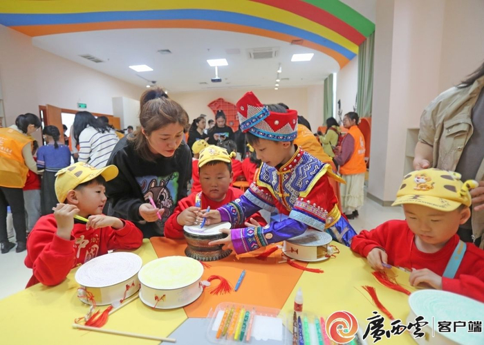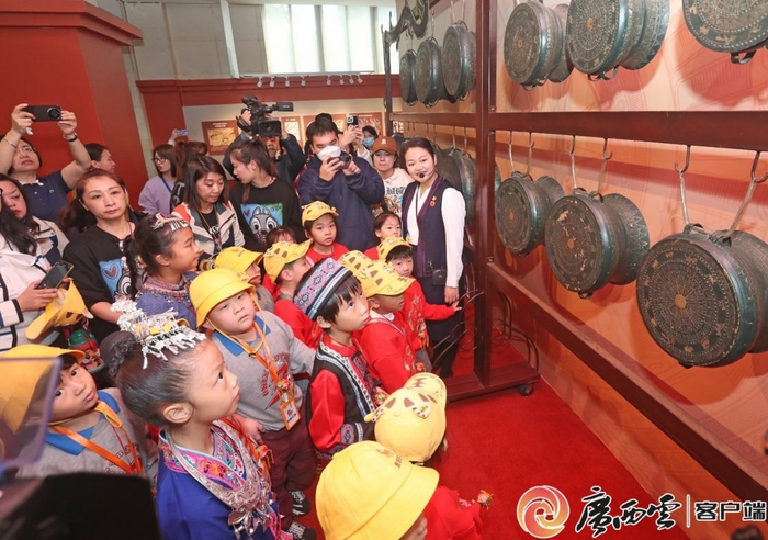 随后,“小东北虎”们来到了广西民族博物馆,在博物馆里与身穿少数民族服装的“小砂糖橘”们共同开启了一段“虎到绿城 探寻壮美家园”游学共建之旅。广西民族博物馆讲解员覃婷介绍,此次游学以广西独特的铜鼓文化为主要内容,通过天琴弹唱非遗展演、展厅研学导览、铜鼓花灯制作体验等互动形式,向“小东北虎”们展示多元的广西民族文化,种下“民族团结”的种子,铸牢中华民族共同体意识。