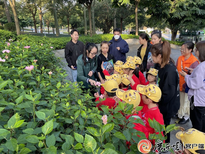 “小东北虎”在南宁市青秀山风景区认识南宁市市花——朱槿花。