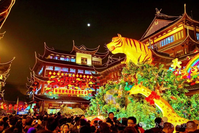 2022年(壬寅虎年):上海豫园2022虎年灯会于1月18号—2月18日举办,历时32天。灯会以国运祈福、城厢民俗和阖家欢乐为叙事线,在三大广场设置“虎跃东方”“九曲廿肆”“财神‘耶’”三大主题灯组,祈愿国泰民安、家和美满。