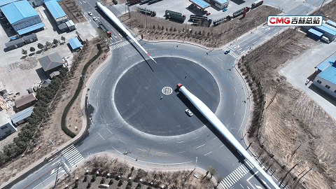 △ 2023年春季,为运输不断“变长”的风机叶片,松原市宁江区改造多处路口,使长达90多米的“庞然大物”成功通过,发往外地。