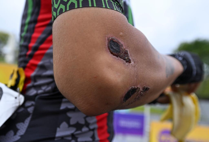 ↑这是2023年10月4日拍摄的阿富汗选手尤勒杜兹·哈希米手肘上的伤疤。