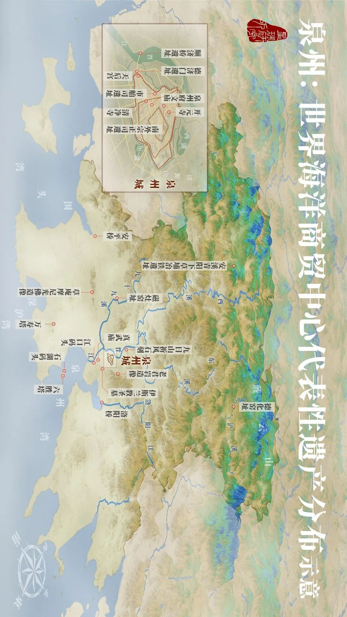 (请横屏观看,“泉州:宋元中国的世界海洋商贸中心”申遗项目代表性遗产分布示意,制图@陈志浩/星球研究所)