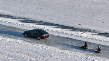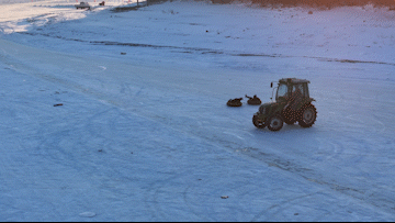 拖拉机拉着雪圈起舞旋转