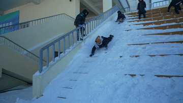 瞬间变身为孩子们的雪滑梯