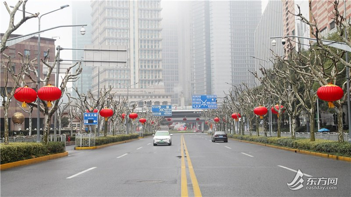 在浦东陆家嘴,或笔直或蜿蜒的路旁,大红的灯笼早已整齐地挂在灯杆上,胖乎乎的灯笼和金红相间的吊穗随风摇曳,灵动中尽显藏不住的喜庆。不少走过路过的市民游客,不约而同地与红红的灯笼同框留念。
