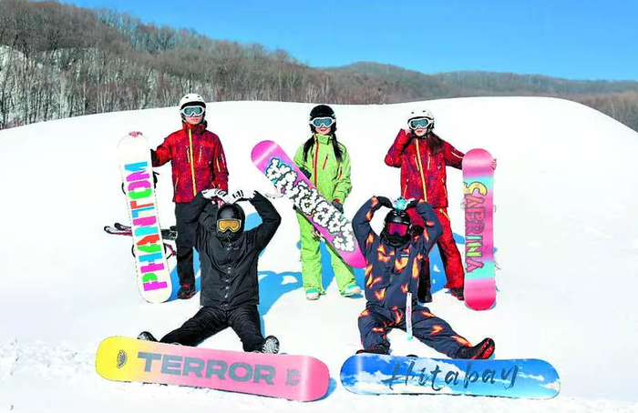 游客在青云小镇体验滑雪乐趣。