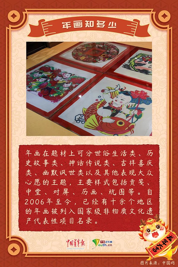 红锦鲤、胖娃娃、大荷花……谁的童年记忆里没有这样一幅年画?年画俗称“喜画”,是中国民间最普及的艺术品之一。每逢岁末,各地人们都喜欢张贴年画,以祝愿新的一年吉祥喜庆。戳图,一起来了解年画!(见习记者 冯云慧 实习生 韩旭阳 记者 刘洪侠)