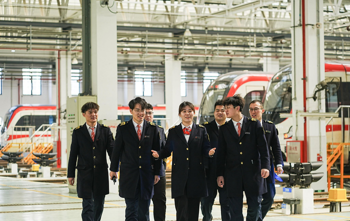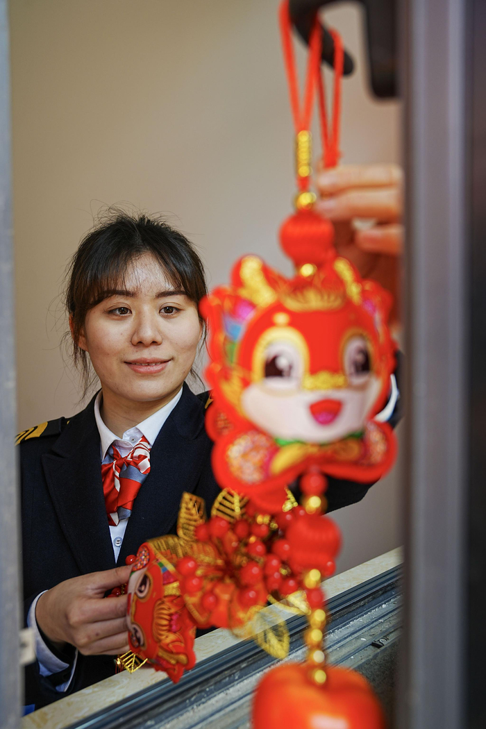 崔玉洁驾驭着钢铁巨龙,在轨道上驰骋,摆渡一车又一车赶着回家过年的旅客。