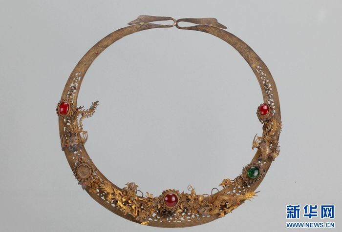 (近代)傣族镂雕龙凤镶石镀金银项圈