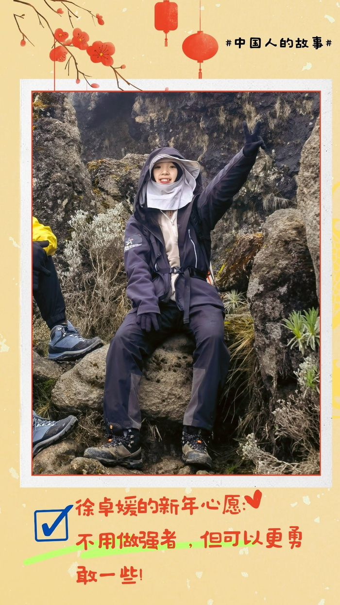 今年春晚,由王凯、陈伟霆、朱一龙在舞台上带来了一首唱给少年的歌——《嘿 少年》,铿锵有力的歌声唱响中华少年意气,映照华夏民族深藏在血脉里的文化基因。在去年,有这样一位成功登顶珠穆朗玛峰的女高中生徐卓媛,她用实际行动让大家看到了“00后”的少年意气。看过《嘿 少年》后,让她进一步确定,追求源于热爱,热爱成就追求。新的一年,徐卓媛的心愿就是继续更勇敢一些,继续突破自我。