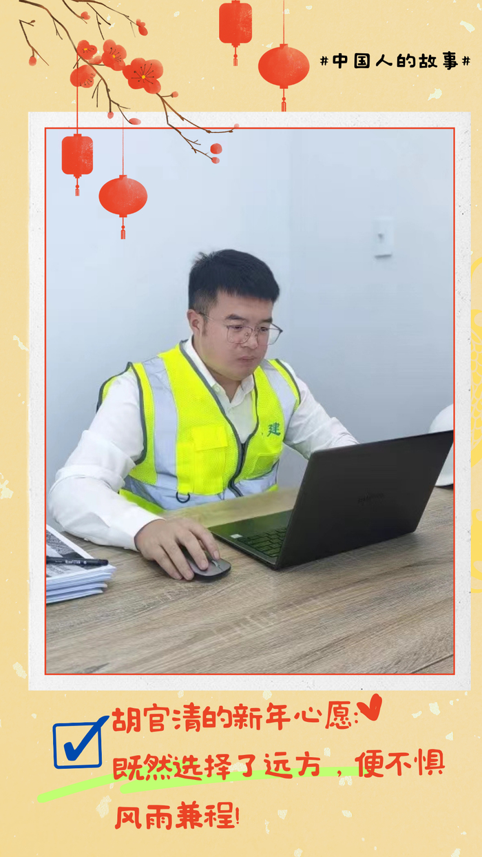 “就算潮起潮落有你撑我,追求梦想永不落。相互抱团取暖,未来热爱着!”看完由陈楚生、苏醒、王栎鑫、张远、王铮亮、陆虎演唱的春晚歌曲《像你这样的朋友》,中建装饰所属海外装饰埃及D04公寓项目执行经理胡官清联想到了和他一起坚守在共建“一带一路”国家的同事们,他们在一个又一个春节坚守在海外,互相支持、一起追梦。“看着图纸上的方案计划逐渐变为现实,这就是梦想成真的感觉”,新的一年,胡官清的心愿是继续在“一带一路”沿线书写“热爱”二字,因为“既然选择了远方,便不惧风雨兼程”。