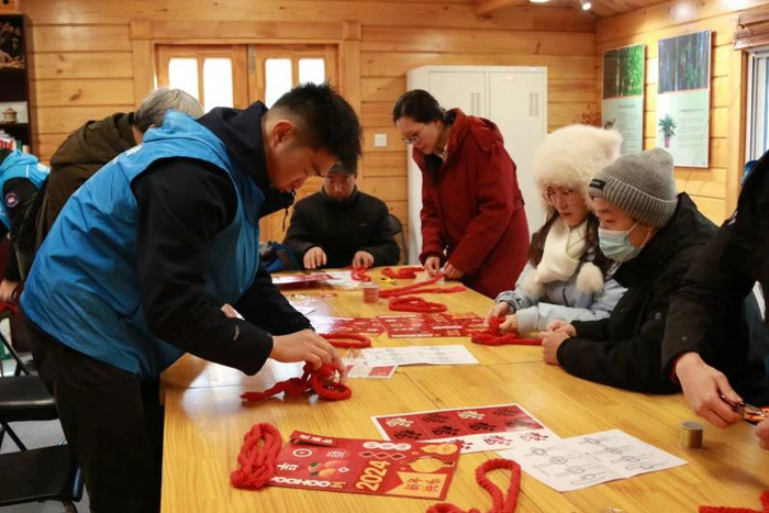紫竹院公园在问月楼、友贤山馆、游客服务中心、乐筠轩科普小屋同步开展新春送祝福、手工体验等活动。科普小屋里,公园志愿者们与游客进行趣味扭扭棒、新年万字结、原创手写红包等手工体验。在问月楼,志愿者们给游客们讲解春节习俗、龙年文化,带领大小朋友组装龙头模型。游客们亲手制作出各种精美的新春手工作品,感受传统文化的独特魅力。