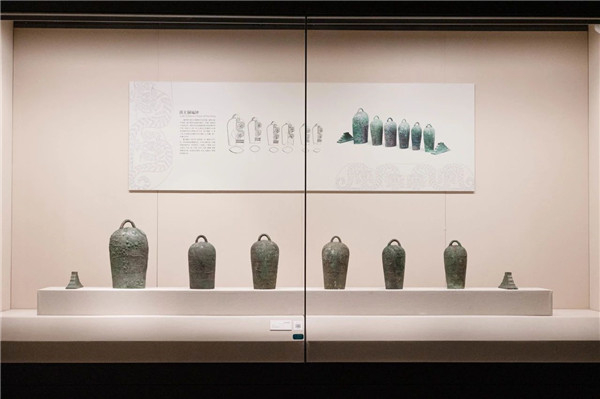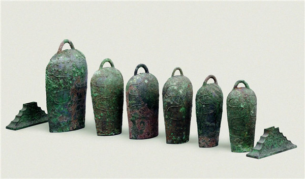 当出土于湖北随州的曾侯乙编钟被称为古代“乐器之王”时,在云南省博物馆“文明之光——青铜时代的云南”展厅里陈列的一套铜编钟却鲜为人知。它因和“滇王金印”同墓出土,被称为“滇王编钟”。