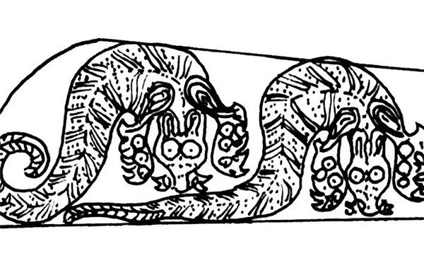 “钟面两侧各铸的四龙很讲究,均为两足三趾,有一足距,长耳,无角,圆睛,颊旁有髭须状物,龙身饰以条纹、点纹,近唇边一周装饰有卷云纹。”据云南省博物馆研究馆员樊海涛介绍,纹饰明显带有汉文化风格,是滇文化与汉文化融合的产物。