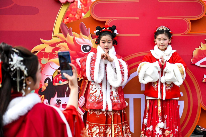 除了“玩什么”,“穿什么”也是年轻人的个性表达。1月以来,某电商平台上“拜年服”一词的搜索量同比增长了5.6倍,其中,“女童马面裙”相关搜索量更是同比增长近40倍。喜庆的“国风拜年服”,成为很多年轻家长给孩子购置新衣的新选择。