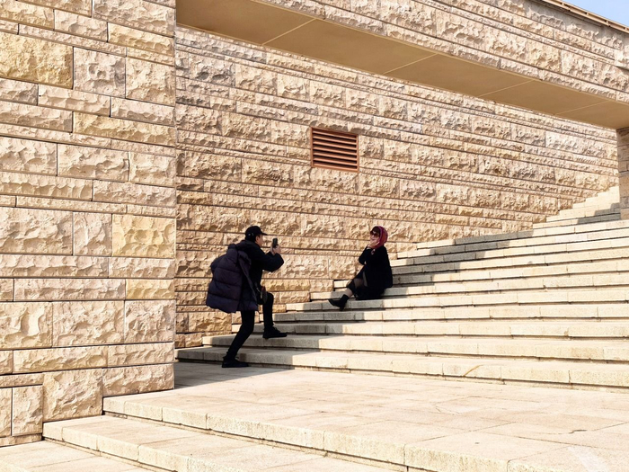 博物院的建筑也是网红打卡点,卡其色的砖瓦墙、充满层次感的阶梯……一键即可出大片。