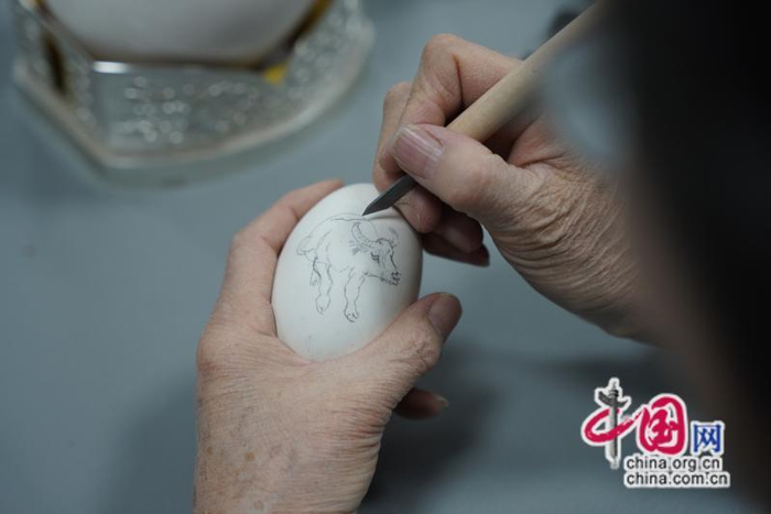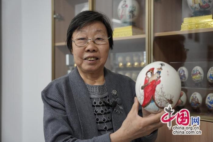 除了剪纸,准旗的其他非遗技艺也得到了保护和发展。现年71岁的蓝天街道居民刘玉芝是非物质文化遗产项目“准格尔民间雕塑”代表性传承人,她退休之后,跟随当地民间艺术家王月英老师学习蛋雕技艺十余年,在传承的基础上不断创新,现可以在任何空蛋壳上创作。