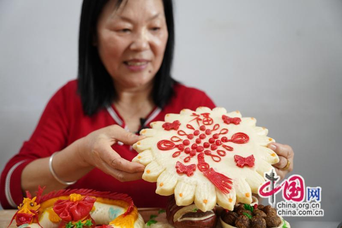 记者看到,叶爱连的面塑作品包括面娃娃、中国结、八大碗、金龙、金鱼多种形象,还有展现乡村文化、民俗文化、饮食文化的系列面塑作品,题材十分丰富。