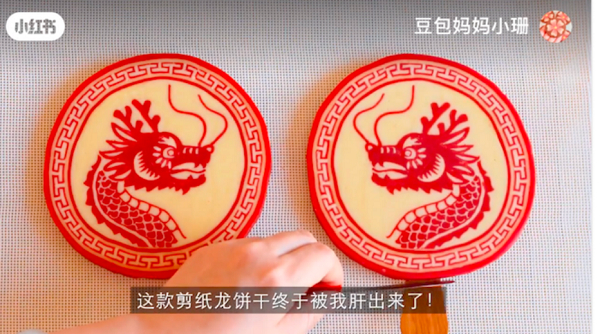 “龙是所有中国人的文化自信,做龙剪纸饼干也是对女儿的言传身教。”过年期间,制作饼干的视频在小红书发布后,获得了超12万点赞,超260万次播放,网友笑称@豆包妈妈小珊为“饼干界院士”。
