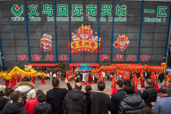鼓点铿锵,龙狮齐舞。2月21日,农历正月十二,经历春节假期的休整,全球最大的小商品集散地——义乌中国小商品城开市迎客。