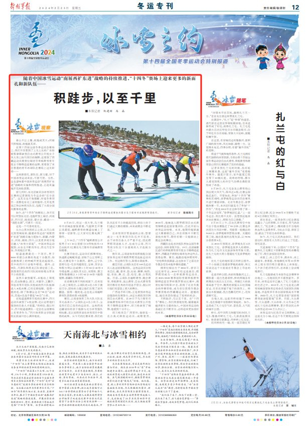 不积跬步,无以至千里。在“十四冬”赛场上,我们欣喜地发现,随着越来越多新生力量的加入,中国冰雪运动的基础正在不断夯实,必将迎来更加美好的未来。