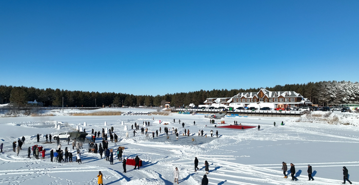 红花尔基樟子松国家森林公园冰雪游玩活动现场(1月16日摄)。新华社发