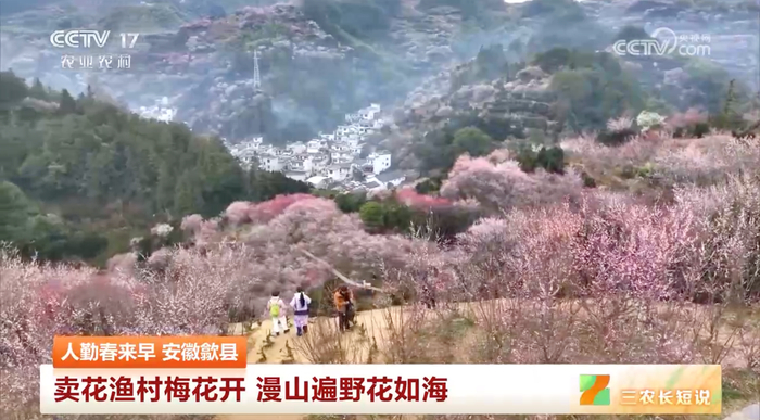 近日,这个村子的山坡上开满了梅花