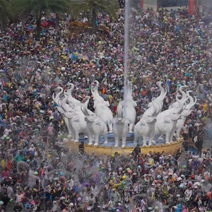 凤凰花开颂盛世,雨林醉美四月天。4月15日,云南省西双版纳傣族自治州庆祝傣历1386年新年节泼水狂欢活动在景洪市泼水广场拉开序幕。