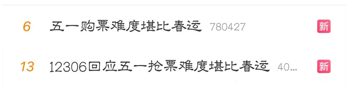 开放购票后,中国网财经注意到,不少网友表示“一秒都不需要,倒计时记完就售罄”“直接变灰,我连有票两个字都没看见过”。此外,“12306秒没”“12306开票即候补”“五一购票难度堪比春运”等相关话题更是了冲上热搜榜。