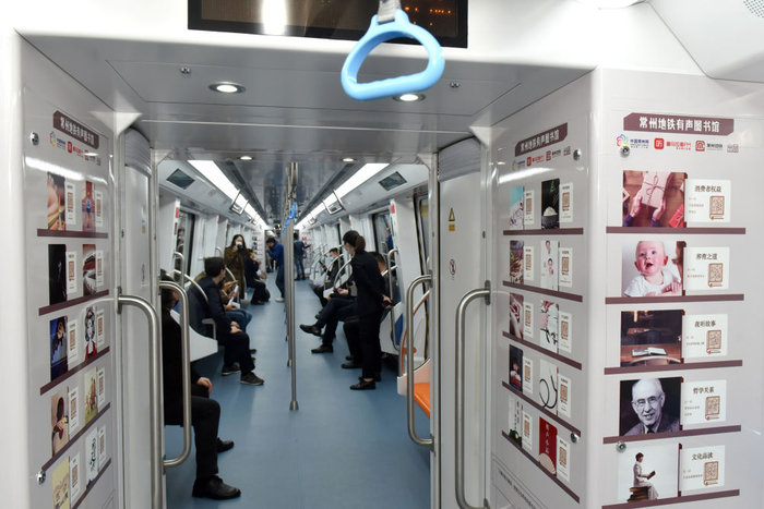 2020年4月21日,江苏常州地铁1号线正式开通“书香常州号——有声图书馆”主题专列,乘客只需扫描站台或车厢内书籍图片旁边的二维码,即可听书。