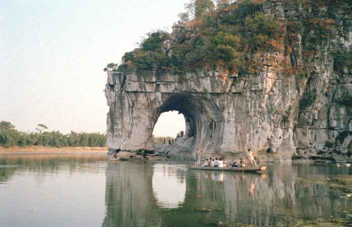1991年拍摄的桂林,左为叠彩山,右为独秀峰,漓江从这两座山前穿越桂林城。
