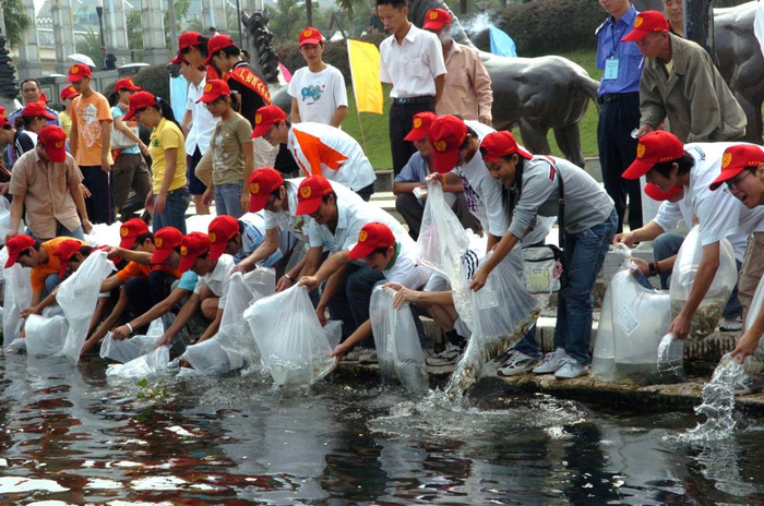 2007年9月6日,250万尾经济鱼苗被投放到漓江。