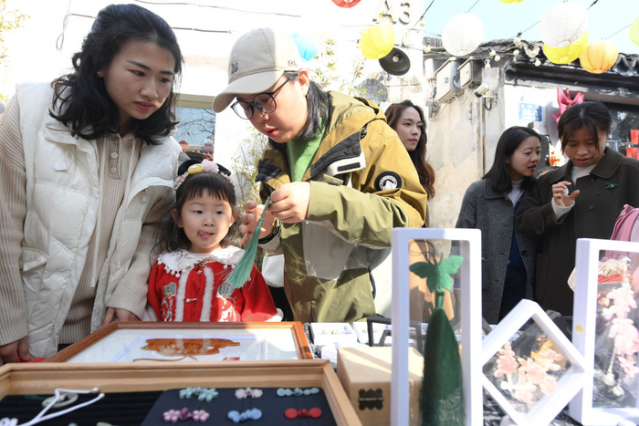人们在小西街参加新春市集(1月13日摄)。