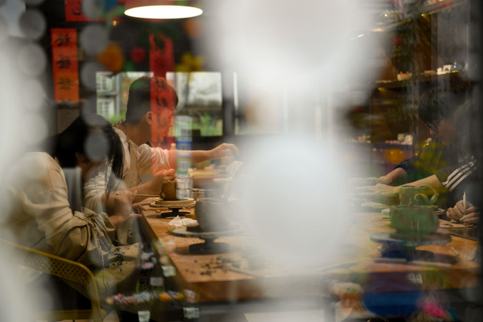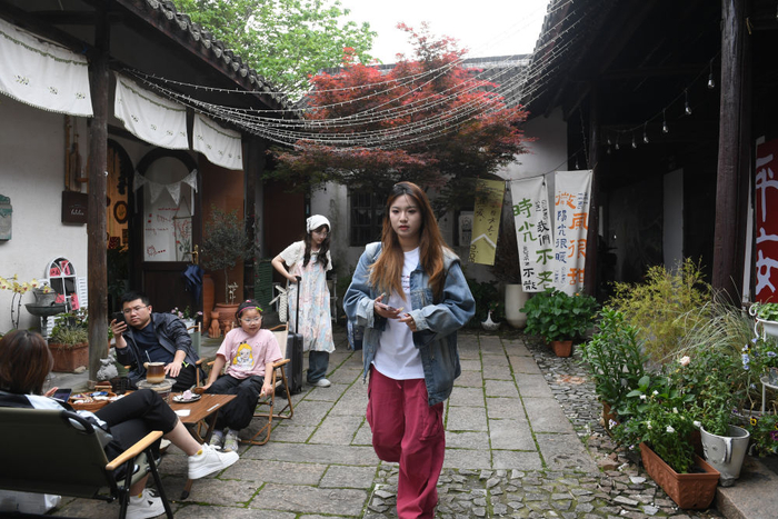 人们在小西街一个老民房改造的手作生活区做手工(4月21日摄)。