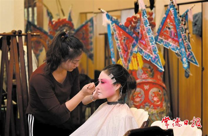 在常德河街鸳鸯走马楼的化妆间,黄洋化好舞台妆