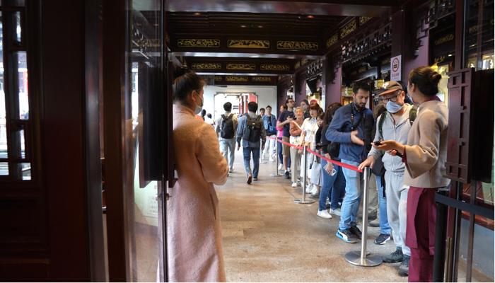 五一假期的到来让本土旅游餐饮消费持续升温,消费潜力得以释放。位于福佑路的上海老饭店以本帮菜著称,拥有国家级非遗、中华老字号等多项荣誉,因此除了上海本地市民以外,这里也是众多国内外游客体验上海本帮菜的首选。据上海老饭店豫园店联席总经理张民民介绍,5月1日、2日买门店28间包房均满,五一期间基本一位难求。