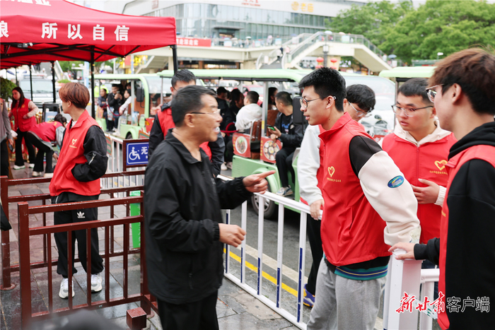 “乘坐观光车的游客请在此排队”“您好,四合院请往这边走”......在文庙观光车停靠点,几个志愿者正在忙着为游客提供各种帮助。张建余、李家硕来自河北,刘炳杉来自江苏,他们均是天水师范学院大一学生,同时也是天水师范学院青年志愿者协会中的一员。“五一”假期,他们主动报名参加志愿服务。“在天水上大学,我们很自豪!趁着假期,我们也想为这个城市做点力所能及的贡献。”