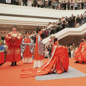 配合展览,“五一”假期,该馆精心推出明代婚礼展演,从舞台、屏风、华服等元素尽力贴近明代风韵,展示新婿新妇携手行拜堂之礼,以全新方式引领公众探寻传统文化的魅力。武汉博物馆馆长任晓飞说,博物馆承载着华夏礼仪文化,如今到博物馆追寻历史已成为年轻人的一种时尚,展演营造出身临其境的参观体验,有助于拉近博物馆与观众之间的距离。