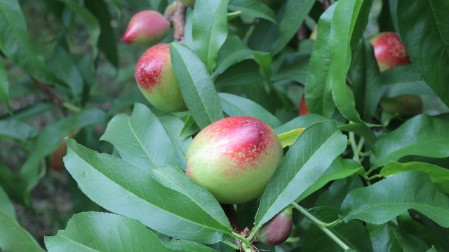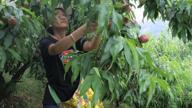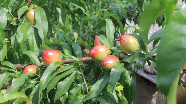 沿着大鹿山往下,山腰上一片绿意盎然,那便是玉地里的桃林,一颗颗白里透红的油桃就藏在绿叶间,挂满了枝干。种植户们正忙着采摘、打包、装箱,发往各地,大家脸上都挂满了丰收的喜悦。油桃口味与普通桃子的口味相差不大,但胜在其外表光滑,采摘体验好。此外,在采摘过程中还能吃上现摘的新鲜果子,这种乐趣只有亲身采摘才能体会得到。