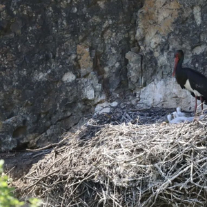 黑鹳又名老油鹳、捞鱼鹳,鹳形目,鹳科,鹳属。黑鹳是世界濒危鸟类,国家一级保护动物,目前全世界仅存2000多只,在中国有1000只左右,因数量稀少,被喻为鸟中“大熊猫”。主要繁殖于河流两岸、高山山顶裸岩的岩壁平台上,每年4月下旬开始筑巢,7月中旬就可看到成鸟领着幼鸟觅食。